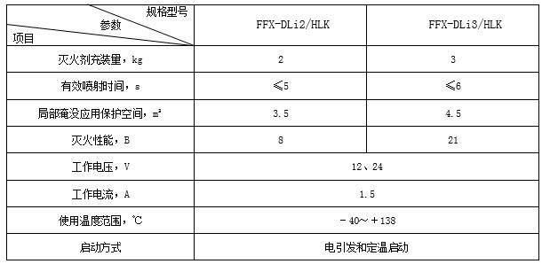 車用鋰電池箱D類干粉自動滅火裝置主要技術參數