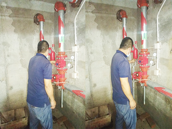 三、檢查消防供水設(shè)施:消防水池外觀,消防水箱外觀,消防水泵及控制柜工作狀態(tài),穩(wěn)壓泵、增壓泵、氣壓水罐工作狀態(tài),水泵結(jié)合器外觀、標(biāo)識,管網(wǎng)控制閥門啟閉狀態(tài),泵房工作環(huán)境。