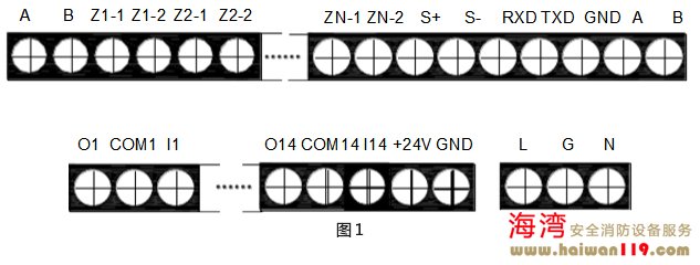 海灣JB-QG T-GST9000消防主機控制器對外接線端子說