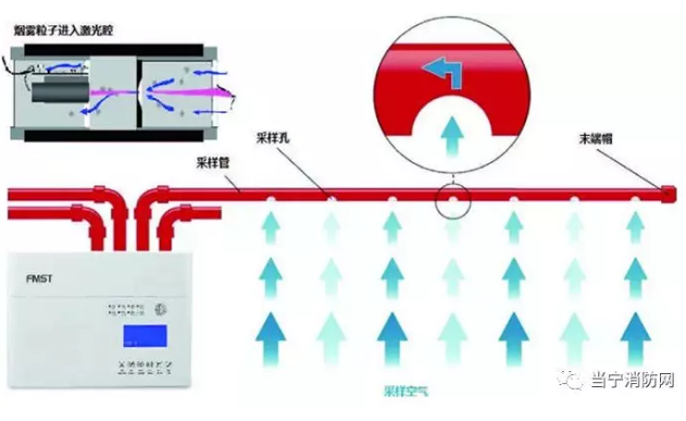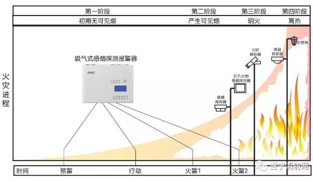 FMST的設計思想是針對火災初期(過熱、悶燒、或低熱輻射和氣溶膠生成等不可見煙霧生成階段)的探測與報警,可以在火災生成初期及時發現并排除火災隱患,使火災損失降到低。